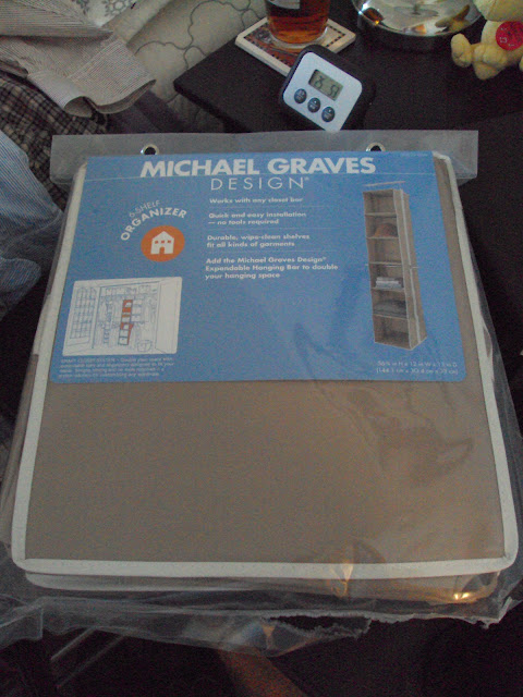 Since we have a rental and I can’t install all of the beautiful Elfa systems that I want from the Container Store, I had to go with what’s already installed, but Hubby was kind enough to indulge me a little and buy one of these neat sweater storage systems from Target.