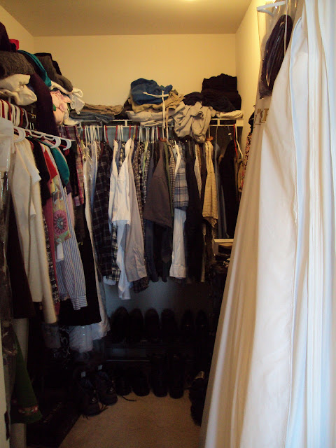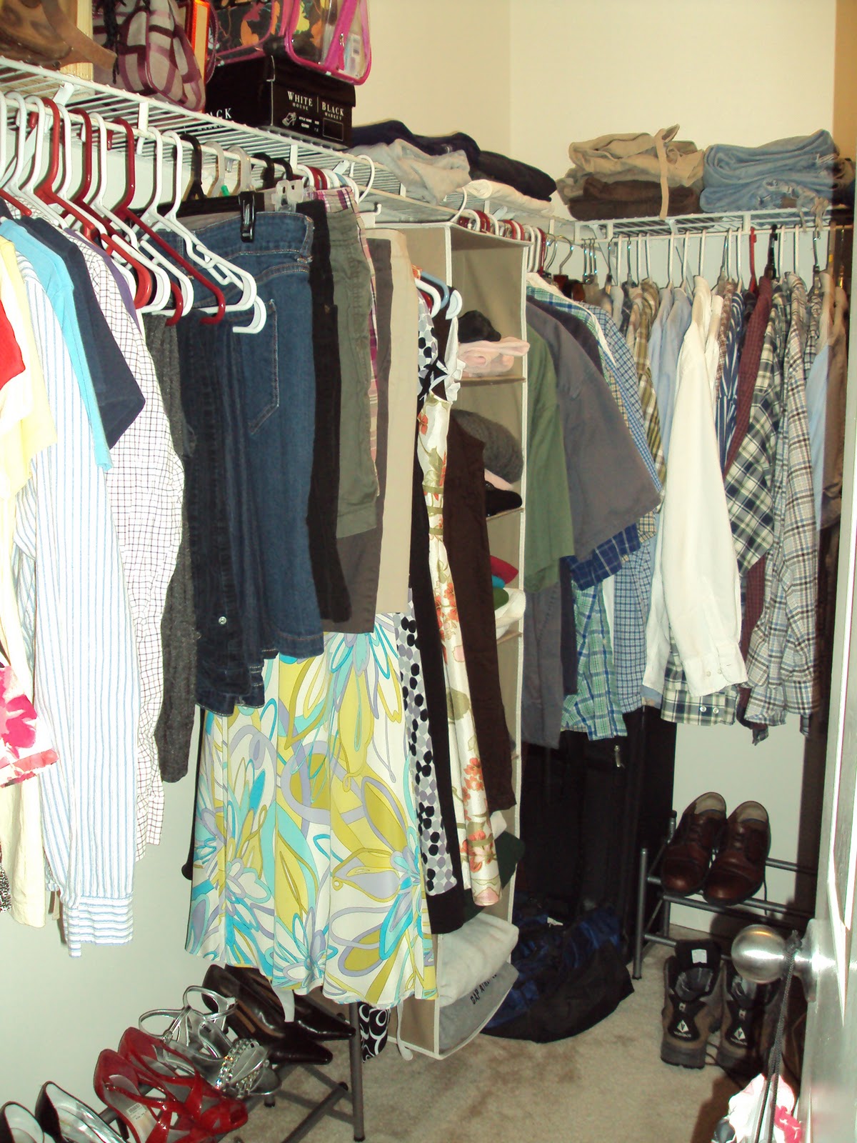 Doesn’t look too bad now does it? Sure it could use a little organization, perhaps some purging here and there, but you could live with it right? Right? Uh huh…(Author’s note: That bag on the door is my wedding dress that’s never made it to the dry cleaners in the year since I got married…)
