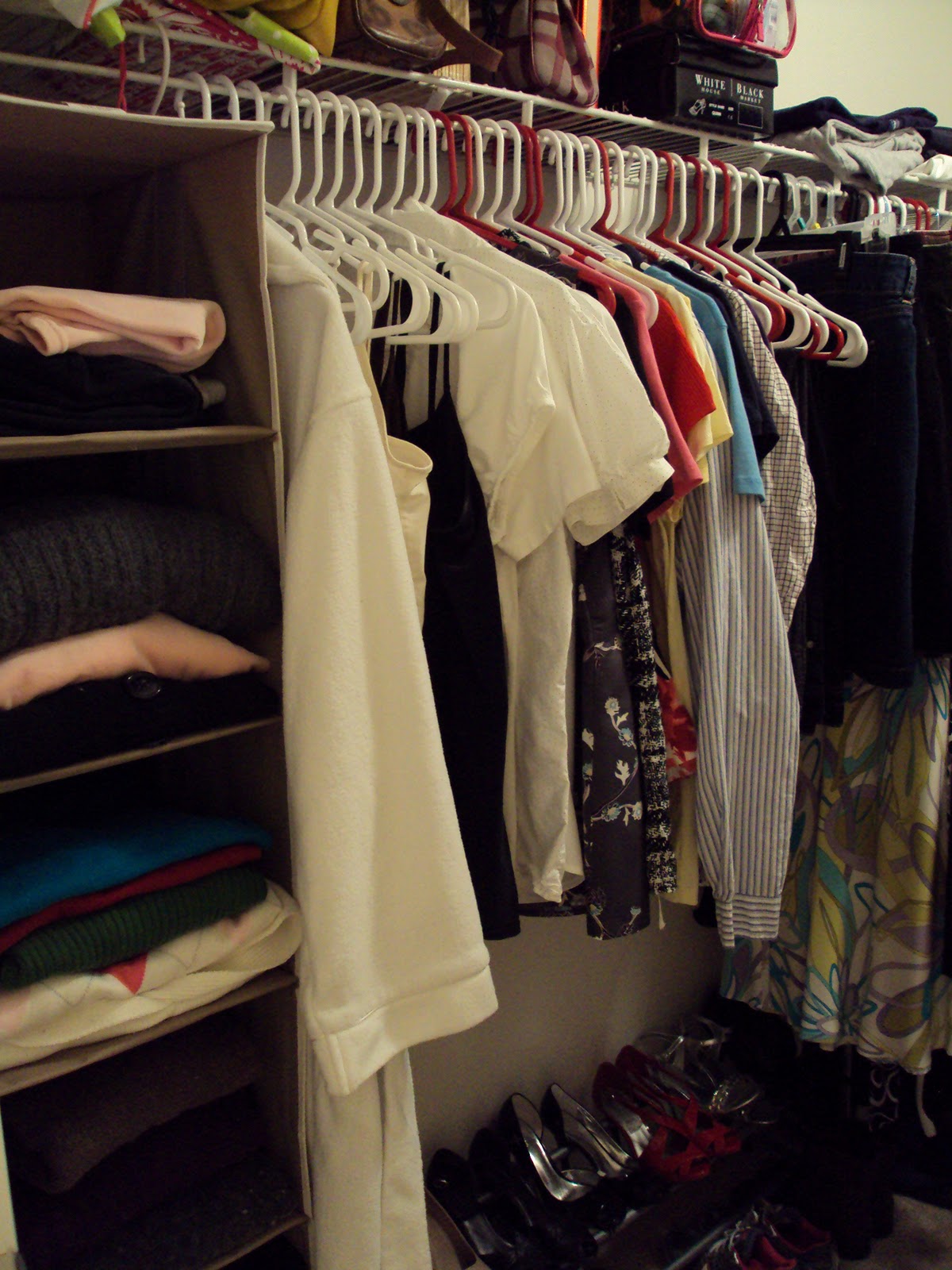 Looks great! Totally jealous you have a container store by you but I’d be broke if I had one close by. I like the sweater thingy between your two sets of clothes and I do my clothes by pants, short sleeve, long sleeve and dresses/skirts. 🙂