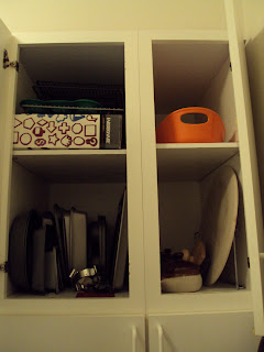 There is only one section I haven’t really gotten to yet, but I only plan on swapping the placement of these items because we use the casseroles all the time, but not so much on the pizza stone or soup crocks.