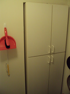 Problem number two above: you can’t see what’s in there. There’s a small overhead light in the pantry/laundry area, but it’s not great and certainly not enough to illuminate the interior of the cabinet. That’s not a dark picture, that’s a dark pantry.