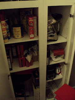 Yep. That closet is my pantry. Please, don’t envy me. 😉 OK, really though, that’s it. It’s a pre-fab Rubbermaid or Closetmaid cabinet made of MDF. It’s about as spectacular as you’d imagine. It’s serviceable, but it has definite drawbacks, but since it’s a rental we can’t change, it’s what we’ve got.