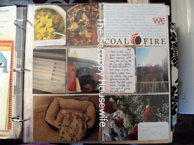 Week 1 Page 2 – This time I used Picnik to create two picture collages that I just cut in half to fit the 3×4 journal card spaces. I included some of the meals we had, the name of the restaurant we visited on an impromptu date night and a snapshot of the temperature last week as well as my new obsession – Twitter!