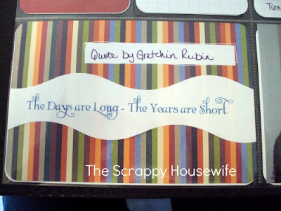 I included a favorite quote by Gretchen Rubin that I think does a great job of summing up *why* we do Project Life. I used my Kiwi Lane design templates to make the wavy white part and a free font (also a new obsession) that I found on the internet. I just printed it off, cut it out and stuck it down.
