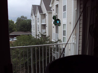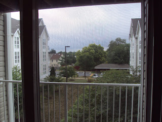Pictures looking out of our sliding glass doors (we’re on the third floor). All of the windows in our apartment have since been taped up in case of breakage.