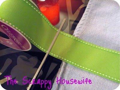 First you’ll cut your ribbon to the length you need, plus a little extra to fold under so you get a clean edge.