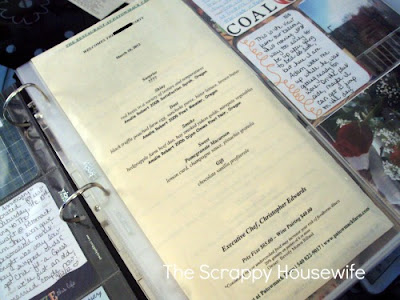 After recieving my core kit and page protectors I knew I’d want some of the different sized page protectors so I ordered a pack of the 6×12 and Design G. Here I used the 6 x 12 to store the menu from our anniversary dinner. They personalized it with our last name even! (I blacked that part out – sorry.)