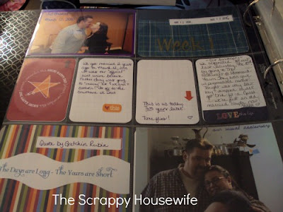 Week 1 Page 1 – Mostly about our anniversary. I included one of our courthouse wedding pics and a pic of us today.
