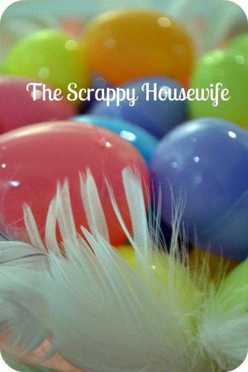 To add to the look and create a centerpiece, I grabbed one of our wedding gifts, a gorgeous glass pedestal bowl. I filled it with some plastic Easter eggs I picked up at the craft store earlier this week. I’ll be using some of the leftover eggs later this weekend in an unexpected way. Don’t worry, I’ll share and hopefully you’ll get a good laugh.